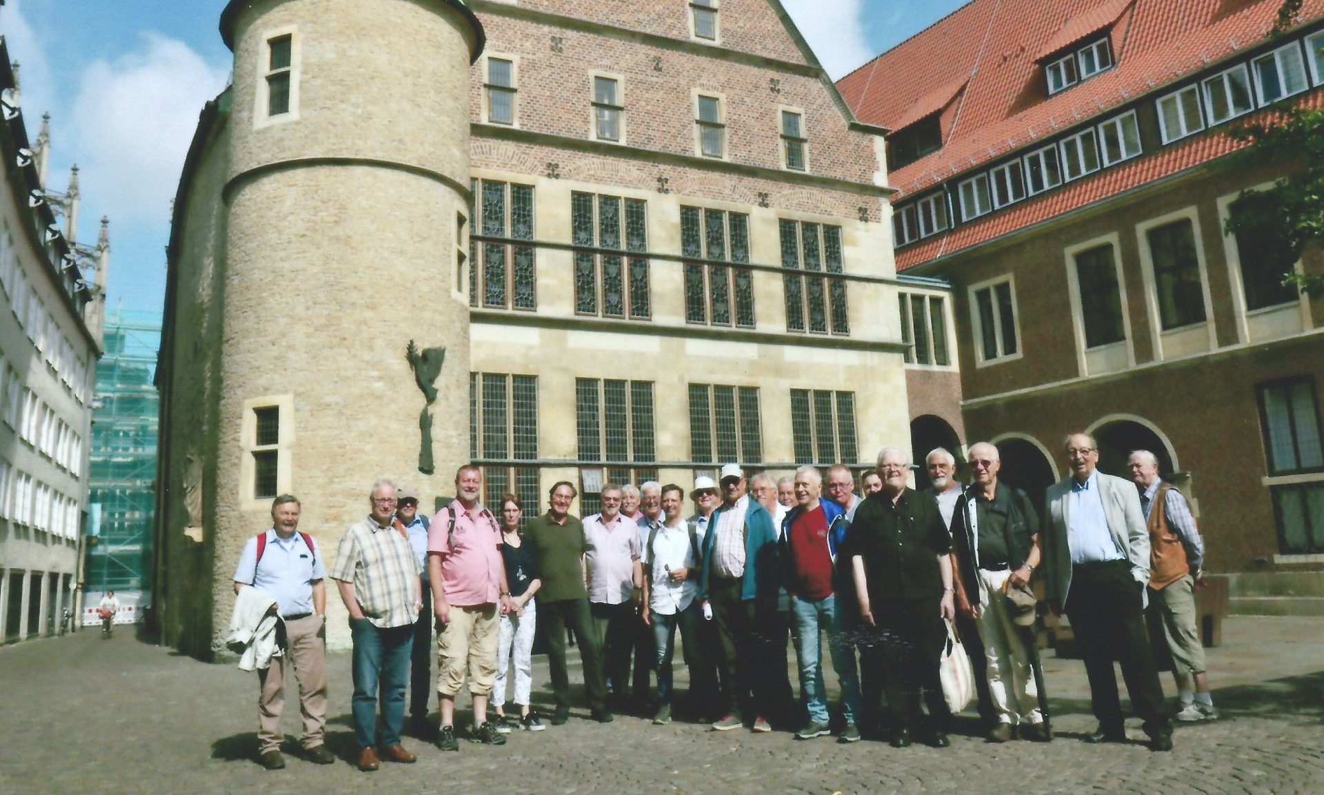 Danach ging es weiter in die 1170 gegründete Universitätsstadt Münster. Die Universität wurde vor 230 Jahren gegründet. Derzeit studieren um die 50.000 Studenten in der Stadt. Nach der Ankunft im Hotel Münnich wurden die Zimmer bezogen, und dann starteten wir zu „Piesers Gasthaus“ in Westbevern. Dieses Münsterländer Gasthaus besteht seit 1589 und ist berühmt für sein selbst gebrautes Bier. Um 13 Uhr begann dann das gemeinsame „Bossel Turnier“, immer die Straße oder den Weg entlang. Es spielten die Bässe gegen die Tenöre.
