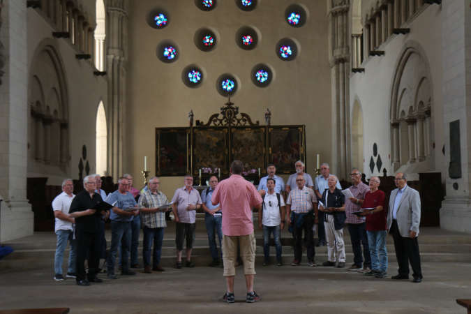 Nachdem wir uns gestärkt hatten ging es zum Dom. Nach einer kurzen Besichtigung sammelten sich die Sänger dann um geistliche Lieder vorzutragen. Unter dem Dirigat unseres Vorsitzenden Jürgen Trautner sangen wir dann die Lieder: „Das Morgenrot“ von H.Pracht ; „Sanctus“ von Silcher und „Oh Herr gib Frieden“, von Bortnianski. Die Resonanz im Dom war überwältigend, die Räuber gaben eine ausgezeichnete Visitenkarte ab. Die Zuhörer waren begeistert und wir auch.